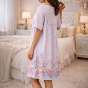 Relax in comfort and style with this Women’s Soft Cotton Blend Floral Printed Night Dress, designed for cozy nights and comfortable home wear. Crafted from soft cotton blend fabric, this nightwear feels gentle on the skin while providing excellent breathability for a relaxed sleeping experience.